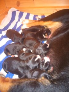 Včeraj nas je Zoya razveselila z njenim prvim leglom…in dobili smo kar 8 mladičkov:) 5 fantov in 3 punce:)